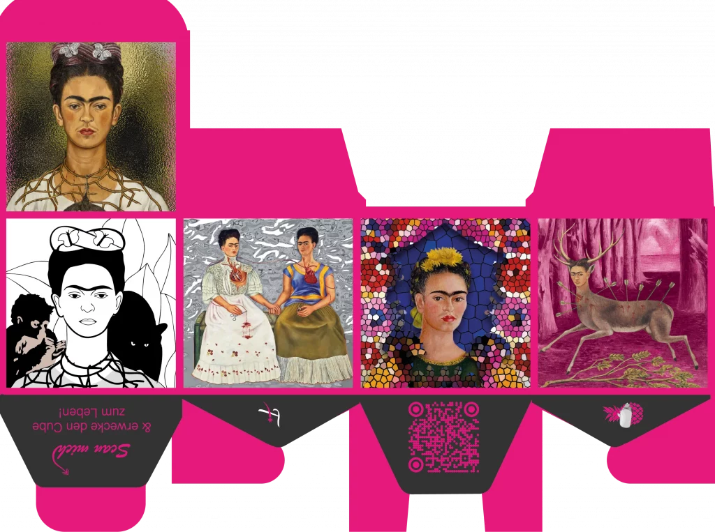 Im ersten Mastersemester entstand das Konzept für das Masterprojekt. Das Digitaltheater Augsburg bietet VR-Theaterstücke an, die in einer Box nach Hause geliefert werden. Für das Stück Frida wurde ein kostengünstiges Souvenir benötigt.
